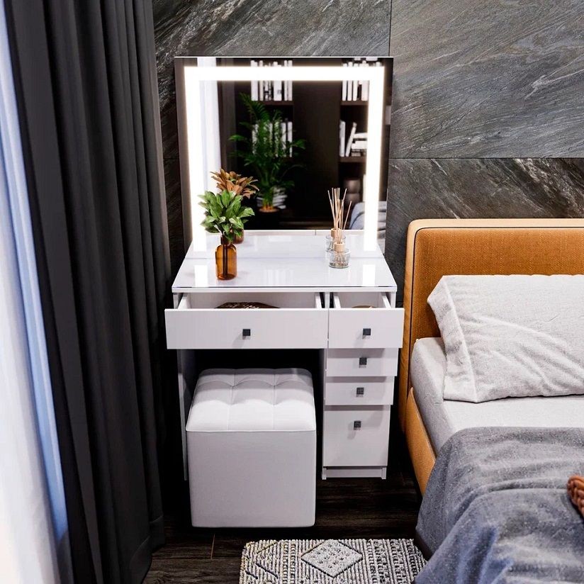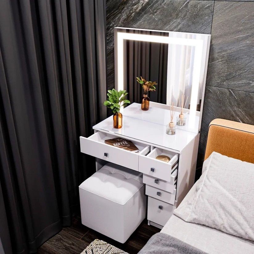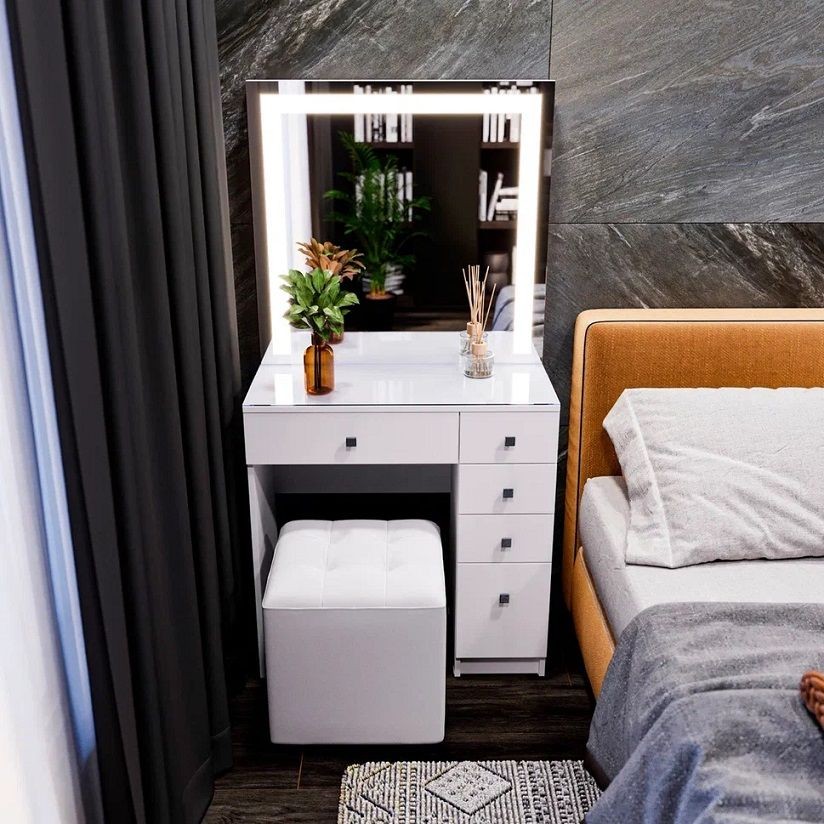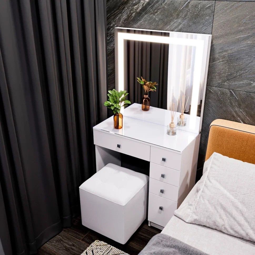 Гримёрный стол с зеркалом в раме с 5 ящиками с LED рамой.