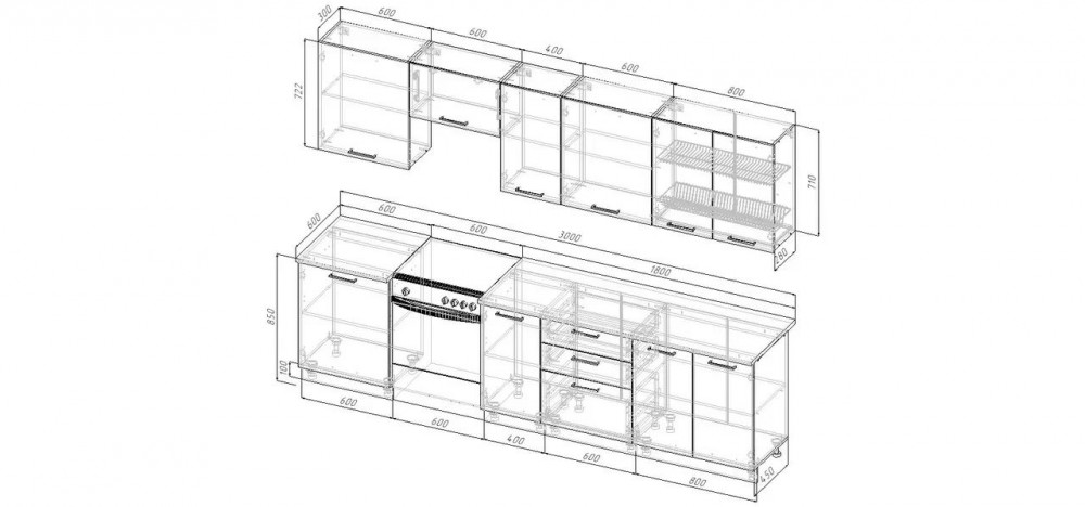 Кухонный гарнитур Меренга 3000 (Стол. 26мм)