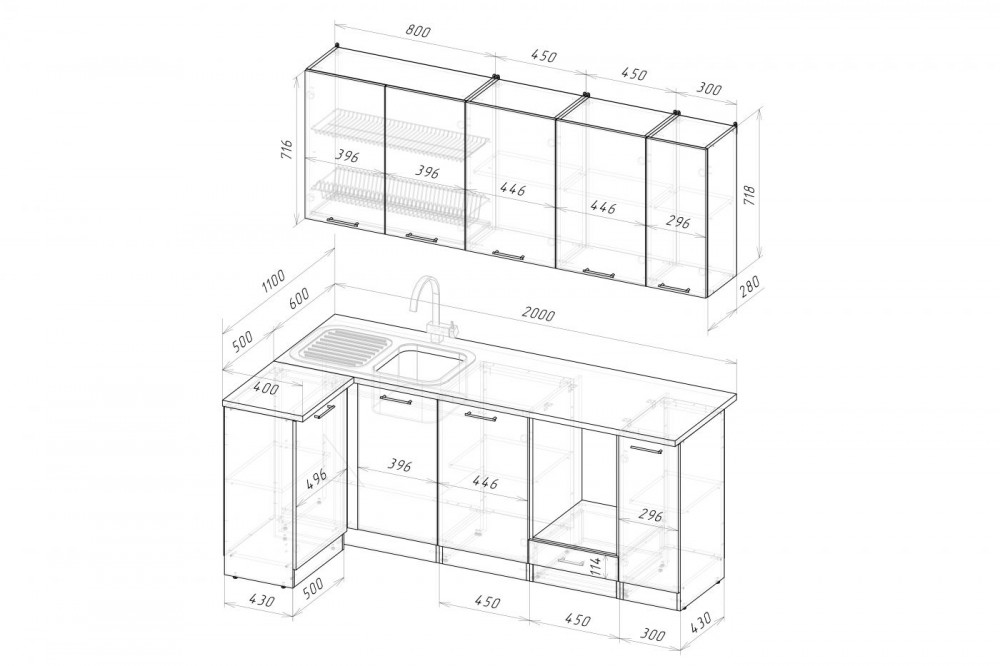 ШЕЛЛИ Кухонный гарнитур Прайм 400 (1100*2000 мм)