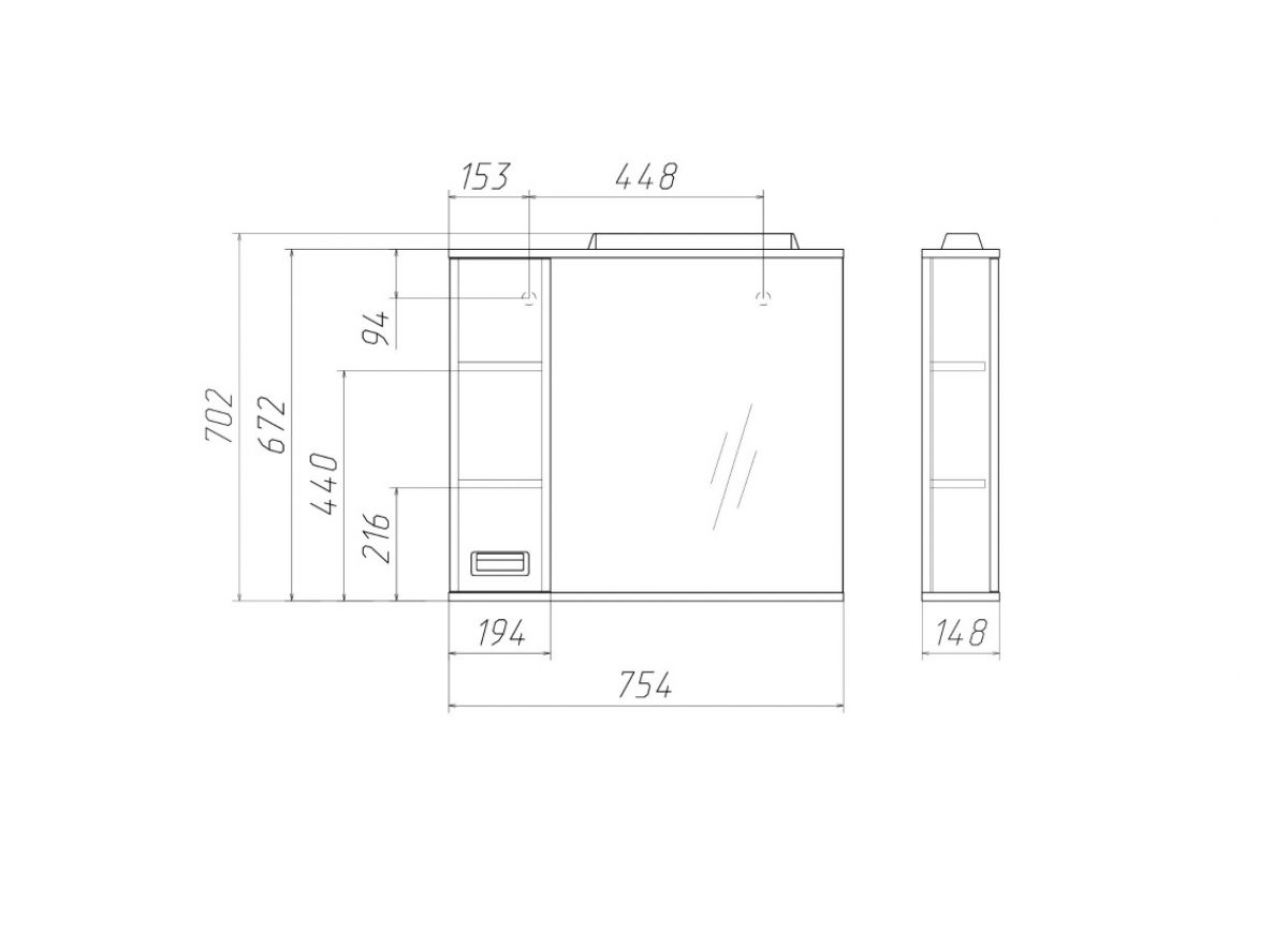 Размер (Ш*Г*В): 754*148*702 мм