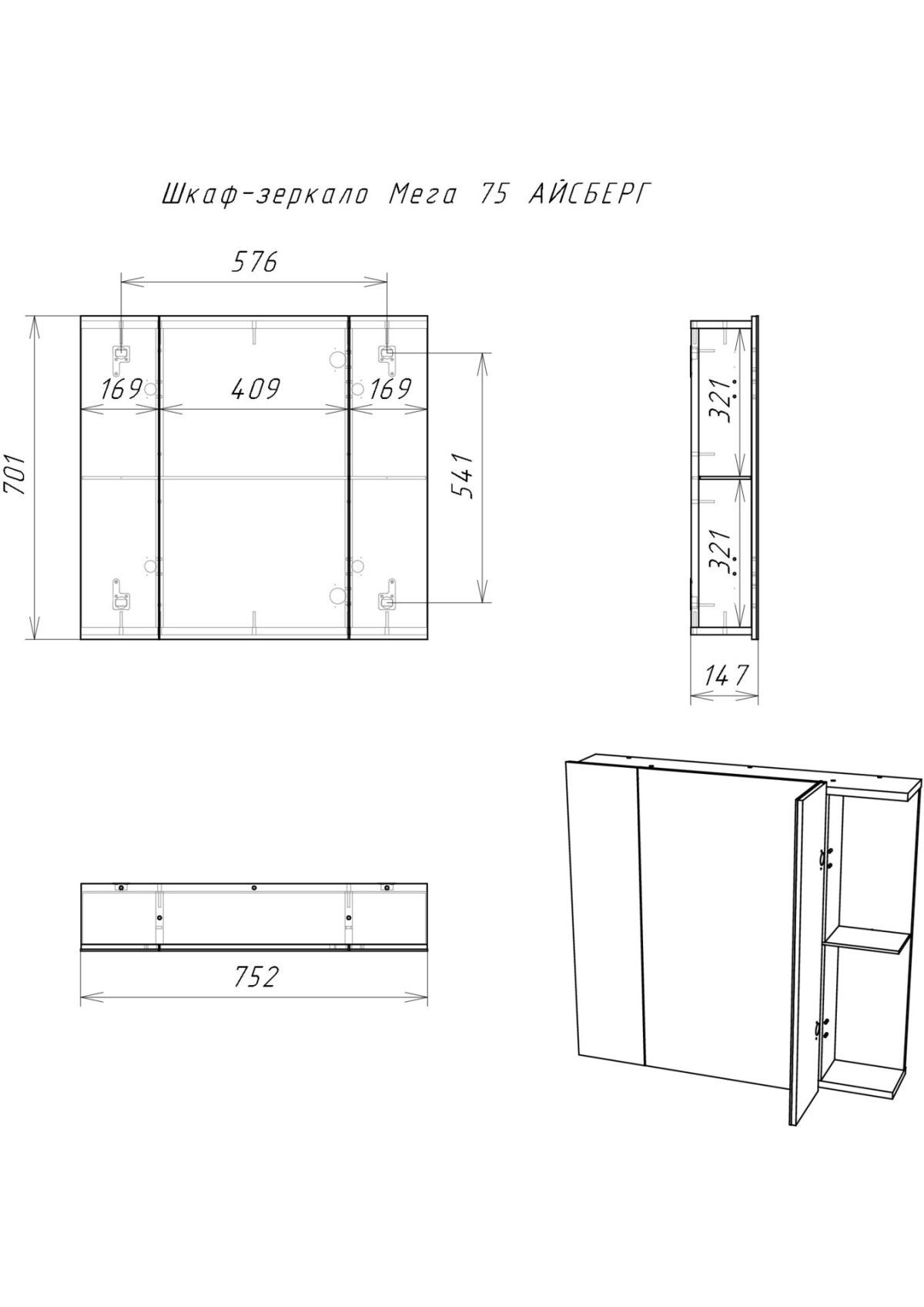 Шкаф-зеркало Мега 75 АЙСБЕРГ (DM4604HZ)