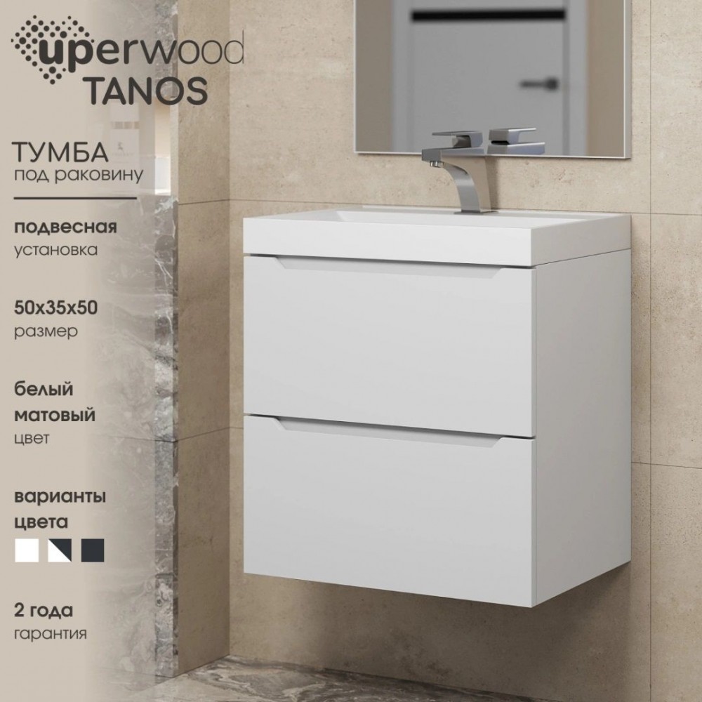 Для тумб Uperwood Tanos подходят раковины из серии Uperwood Classic, Classic Quartz, Classic New, соответствующие ширине тумб.