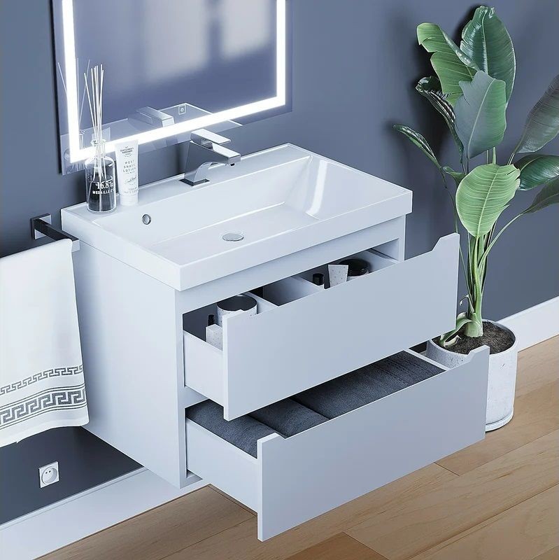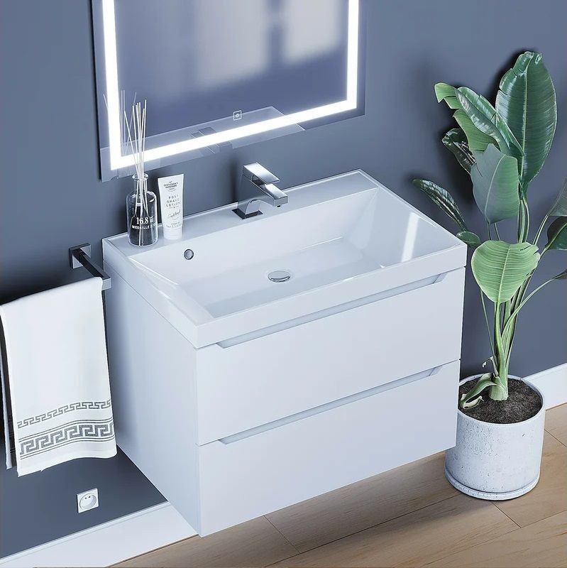 Тумба под раковину Uperwood Tanos 70 см, подвесная, белая матовая