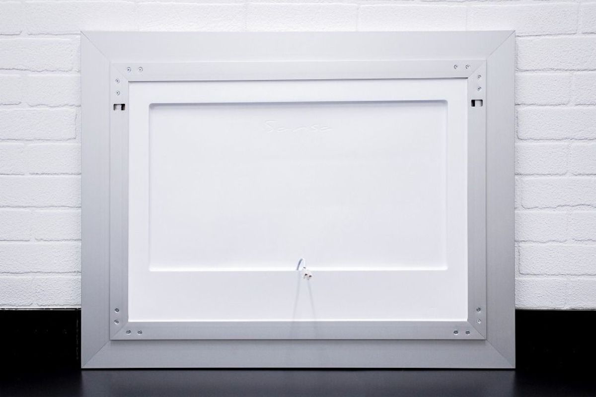 Крепления расположены горизонтально. Корпус выполнен из алюминиевого профиля, который защищает края зеркала, обеспечивает долговечность конструкции и придает изделию эксклюзивный дизайн. На всех зеркалах применяется светодиодная лента. Светодиодная подсветка отличается низким энергопотреблением, высокой безопасностью (светодиоды запитаны напряжением 12 В) и долгим сроком службы. Задняя часть зеркала закрыта специальной пластиковой панелью, что обеспечивает дополнительную защиту от пыли и влаги, и презентабельный внешний вид.